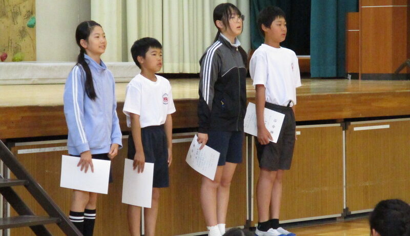 10月4日開催の運動会に向け、6年実行委員4名が、全校へZOOM発信の集会を行い