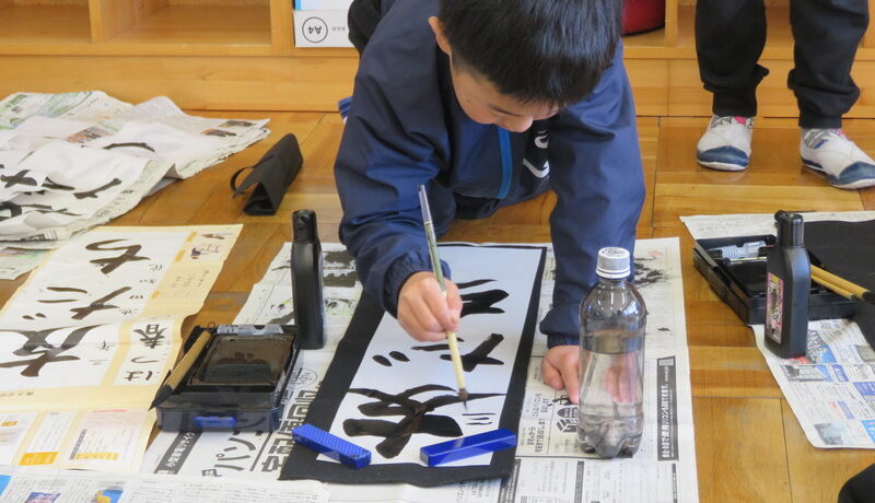 6年生が、元号「令和」を揮毫された書家・茂住菁邨(もずみせいそん)先生の特別
