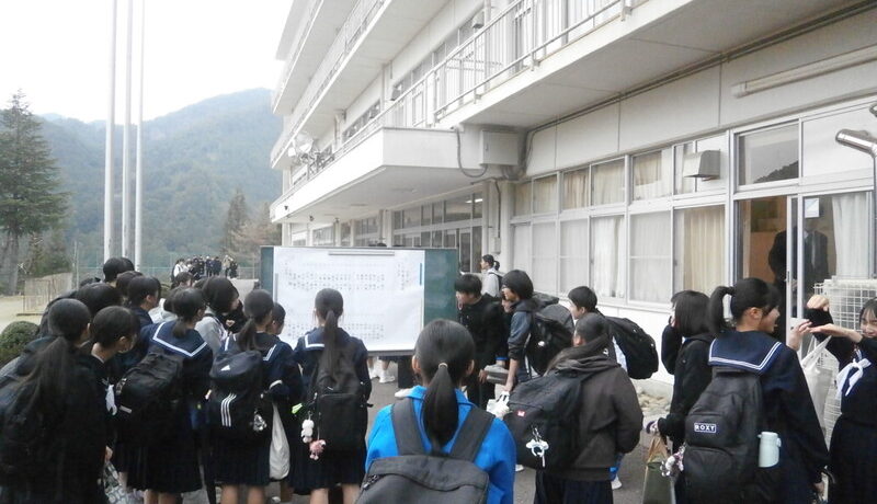 4月7日朝、学級の張り出し名簿の発表に歓声が上がりました。新教室での顔合わせ。