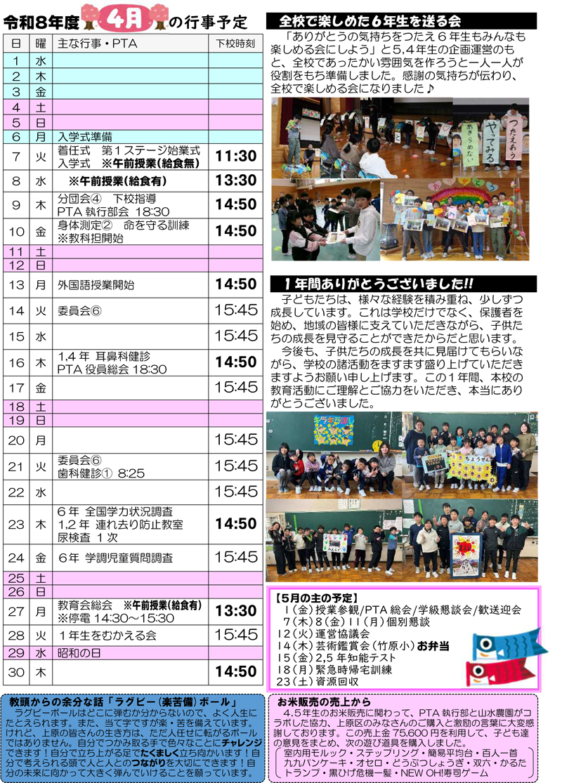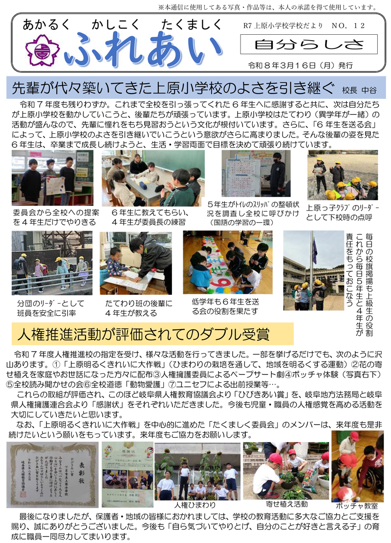 上原小学校だより3月号