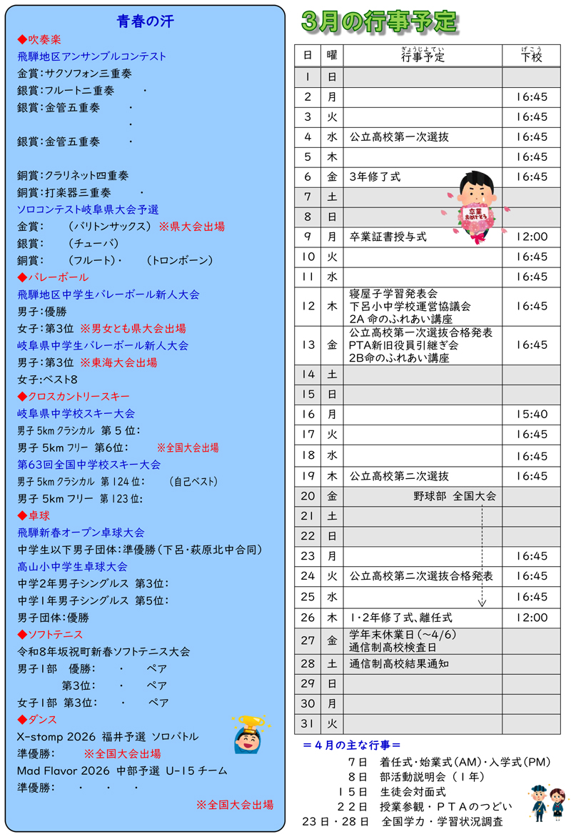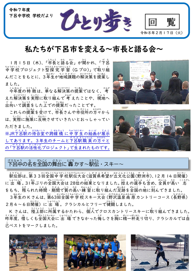 下呂中学校だより2月号
