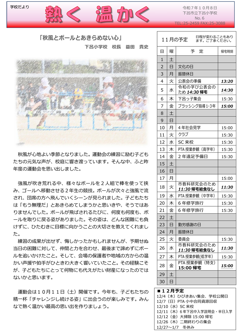 下呂小学校だより10月号