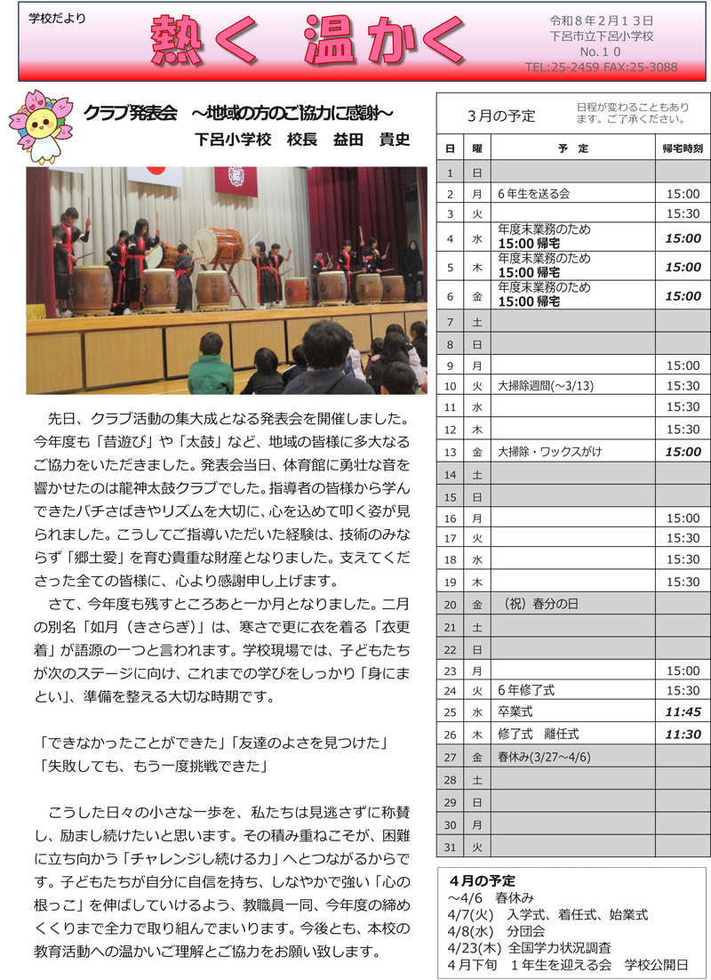 下呂小学校だより2月号