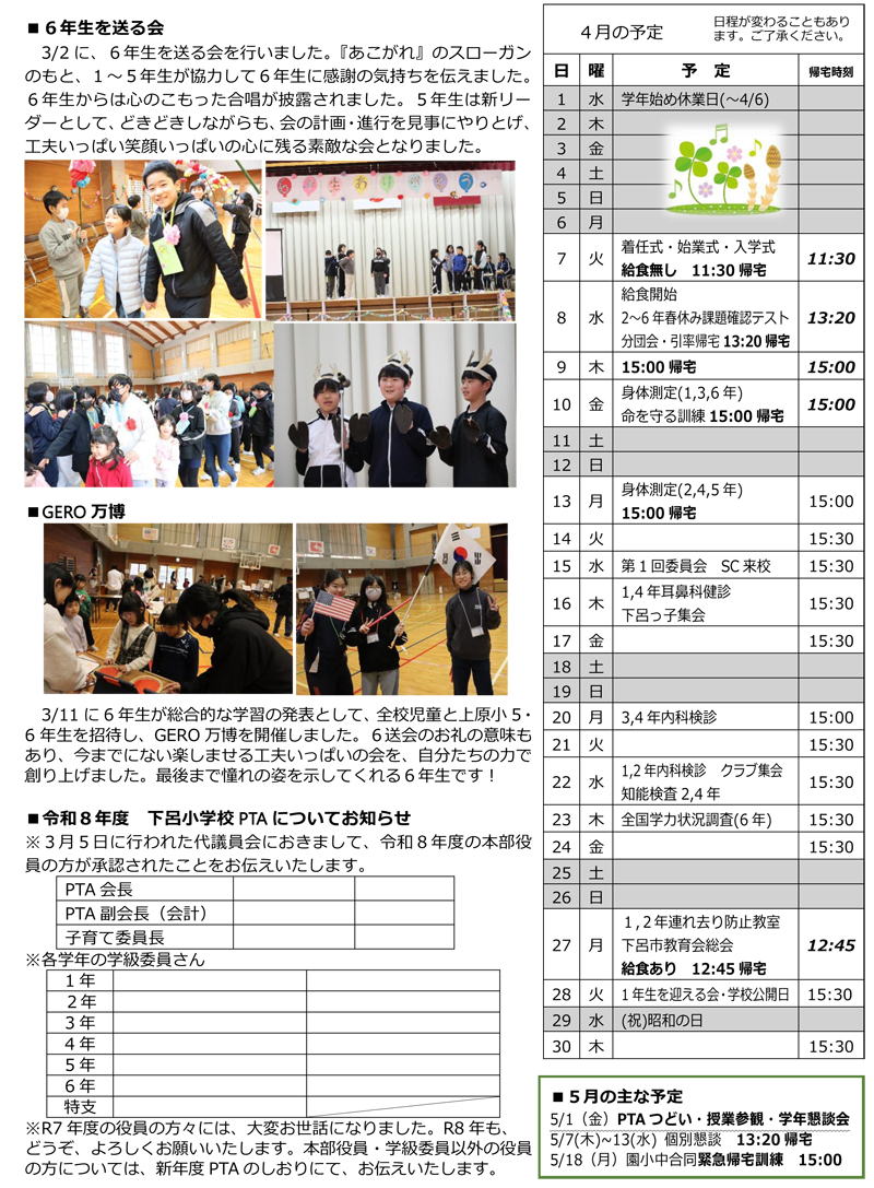 下呂小学校だより3月号