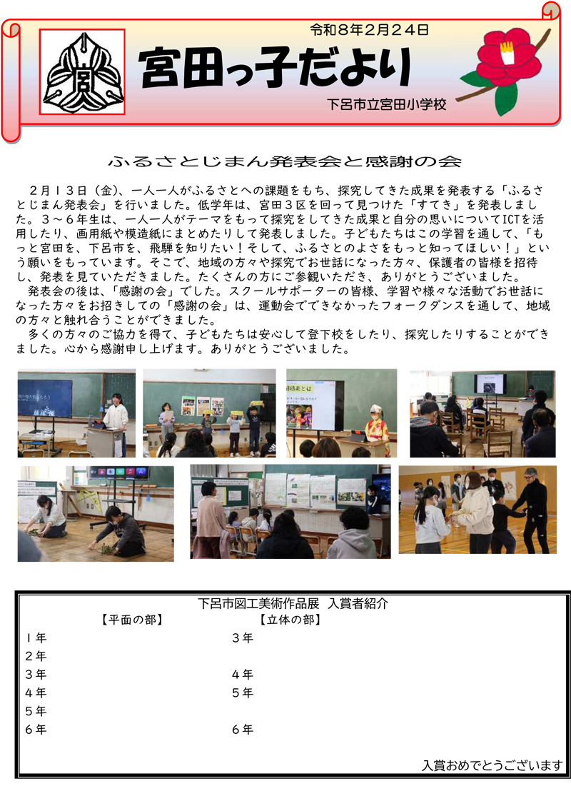 下呂市の小学校9校、中学校6校の情報を中心に、学校教育についての情報をお届けします