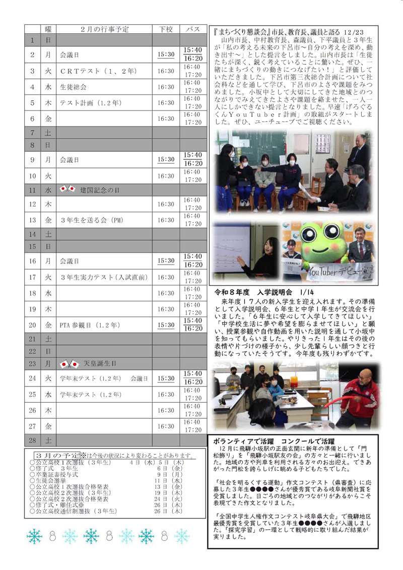 下呂市の小学校9校、中学校6校の情報を中心に、学校教育についての情報をお届けします