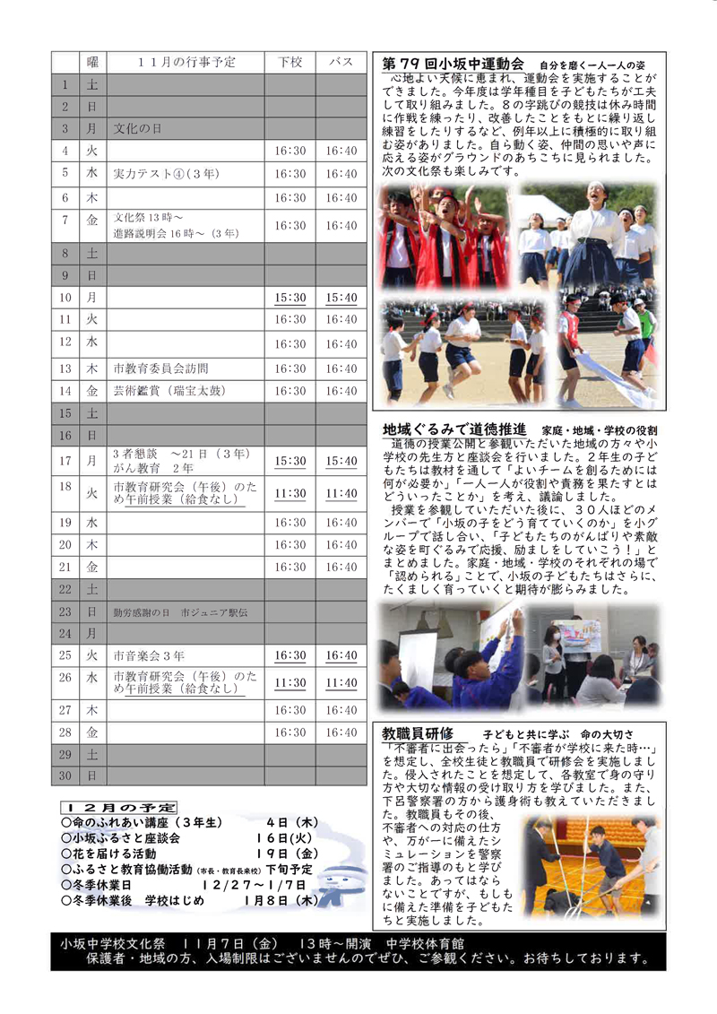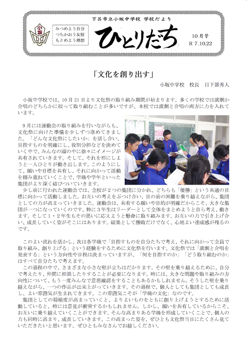 小坂中学校だより10月号