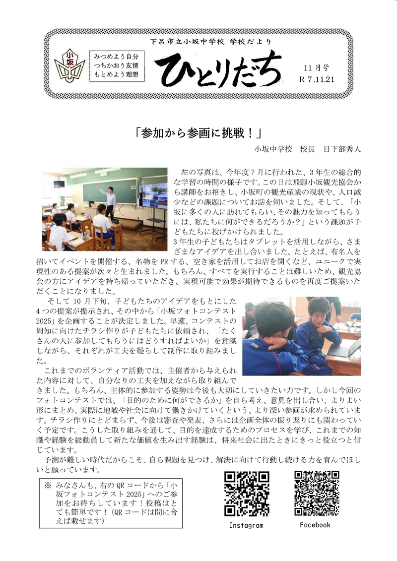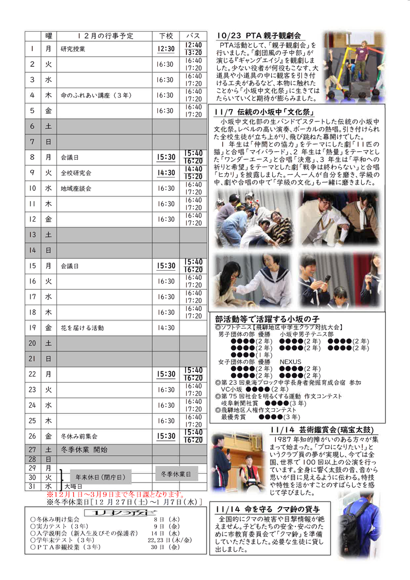 小坂中学校だより11月号