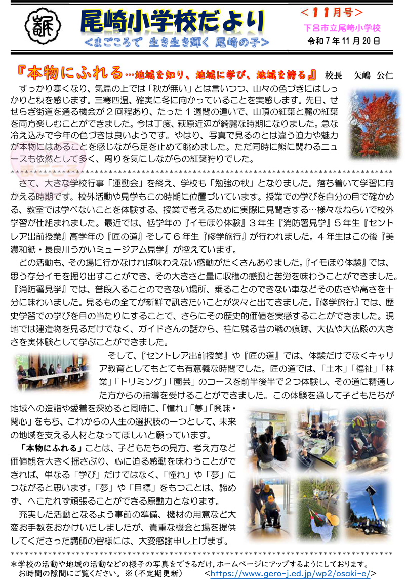 下呂市の小学校9校、中学校6校の情報を中心に、学校教育についての情報をお届けします