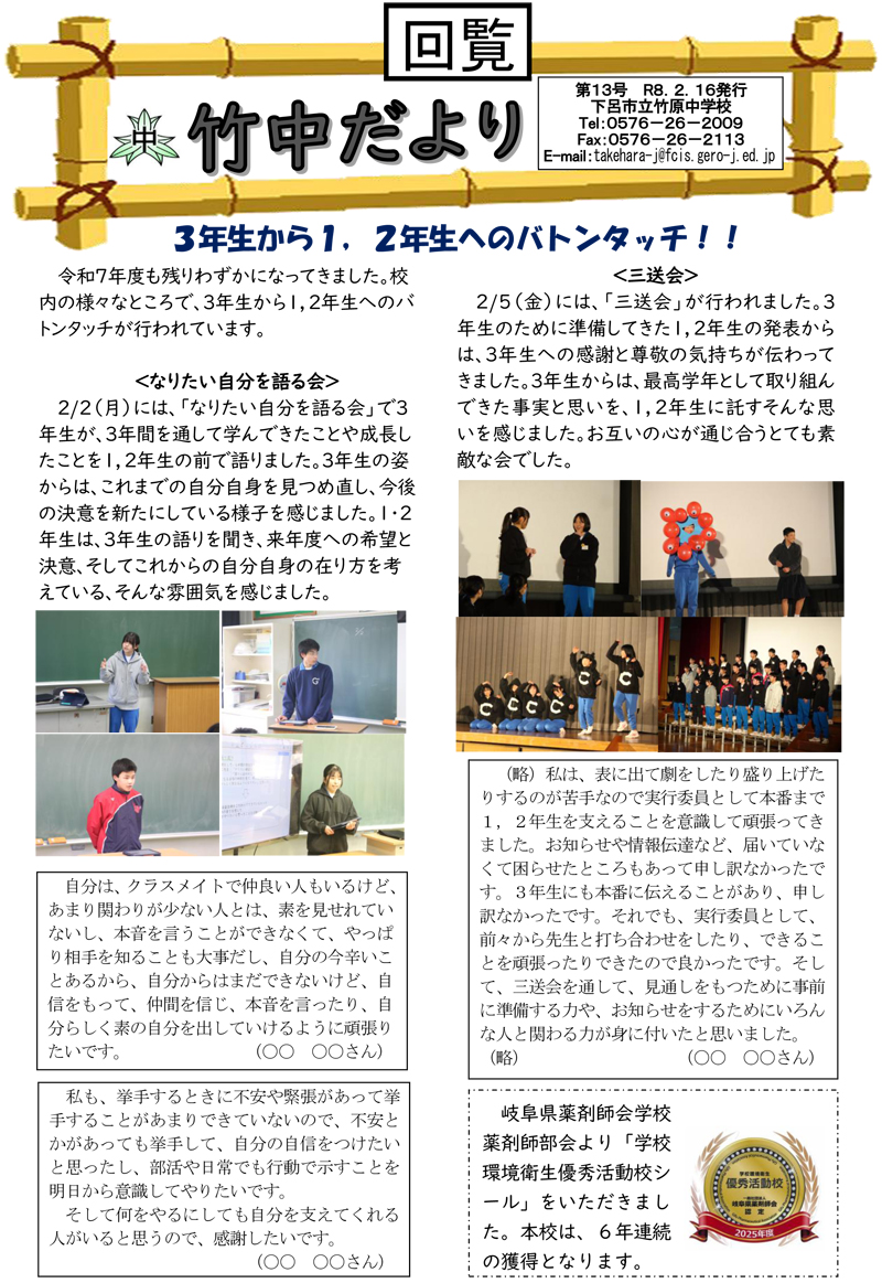 竹原中学校だより第13号