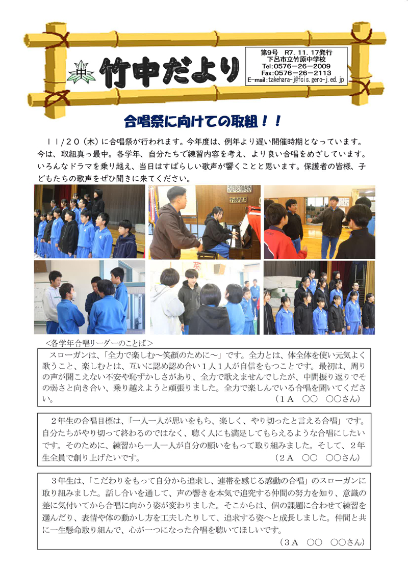 下呂市の小学校9校、中学校6校の情報を中心に、学校教育についての情報をお届けします