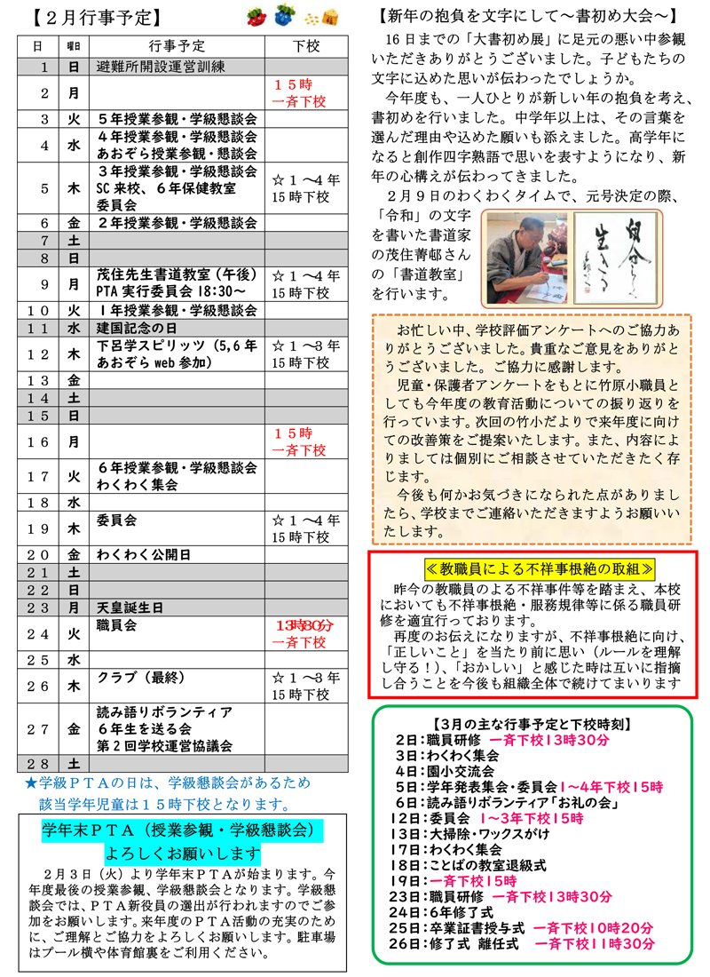 竹原小学校だより1月号