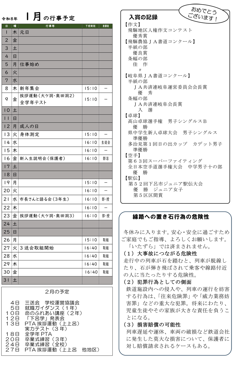 下呂市の小学校9校、中学校6校の情報を中心に、学校教育についての情報をお届けします
