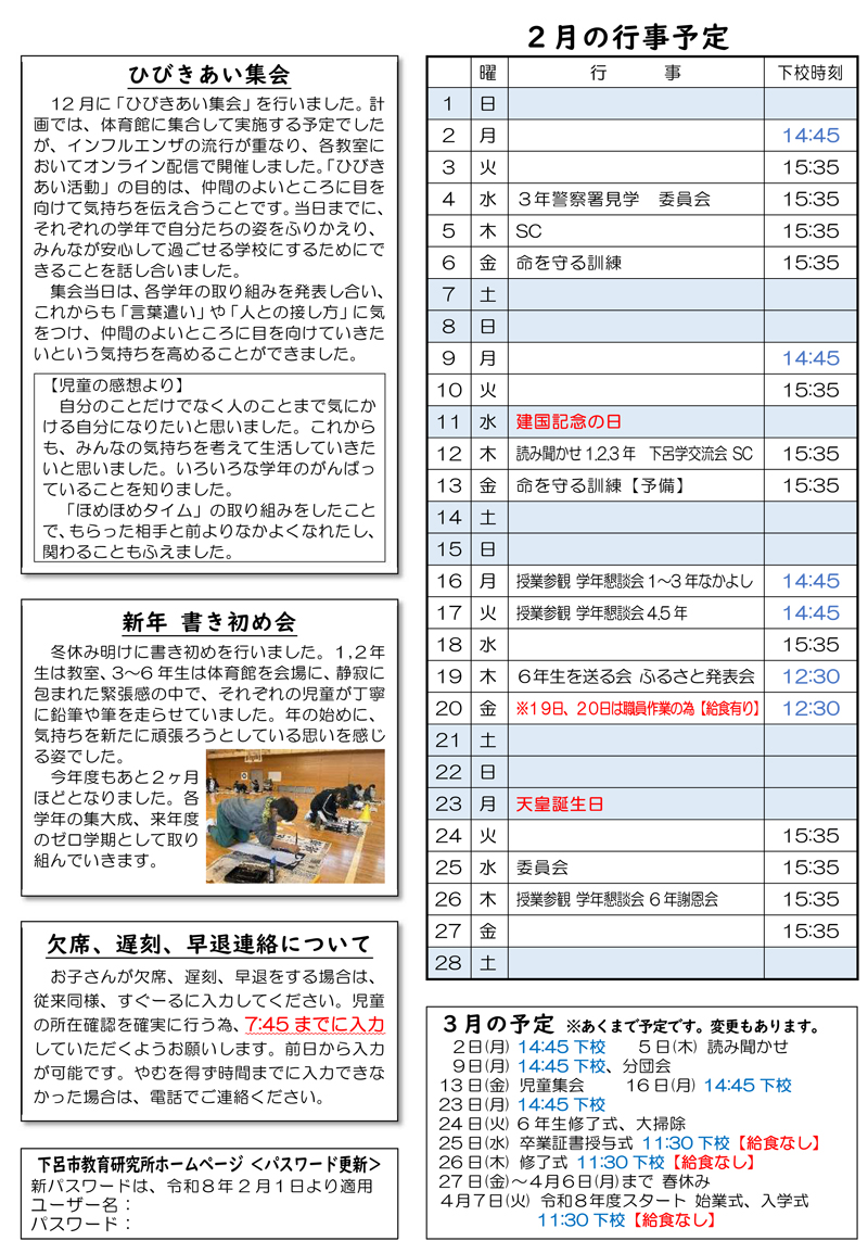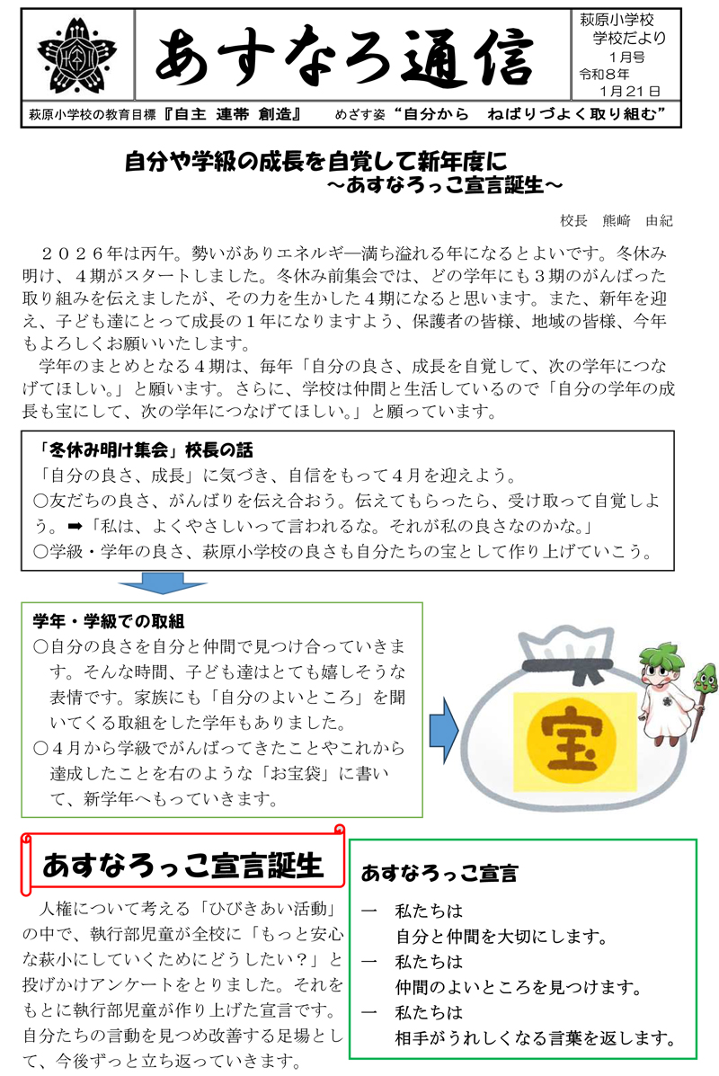 萩原小学校だより1月号