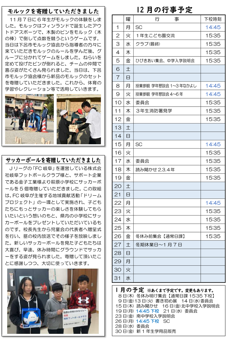 下呂市の小学校9校、中学校6校の情報を中心に、学校教育についての情報をお届けします