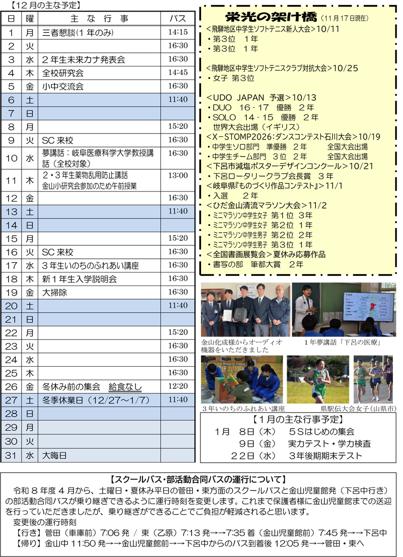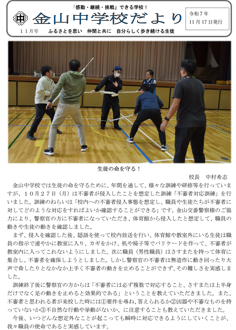 金山中学校だより11月号