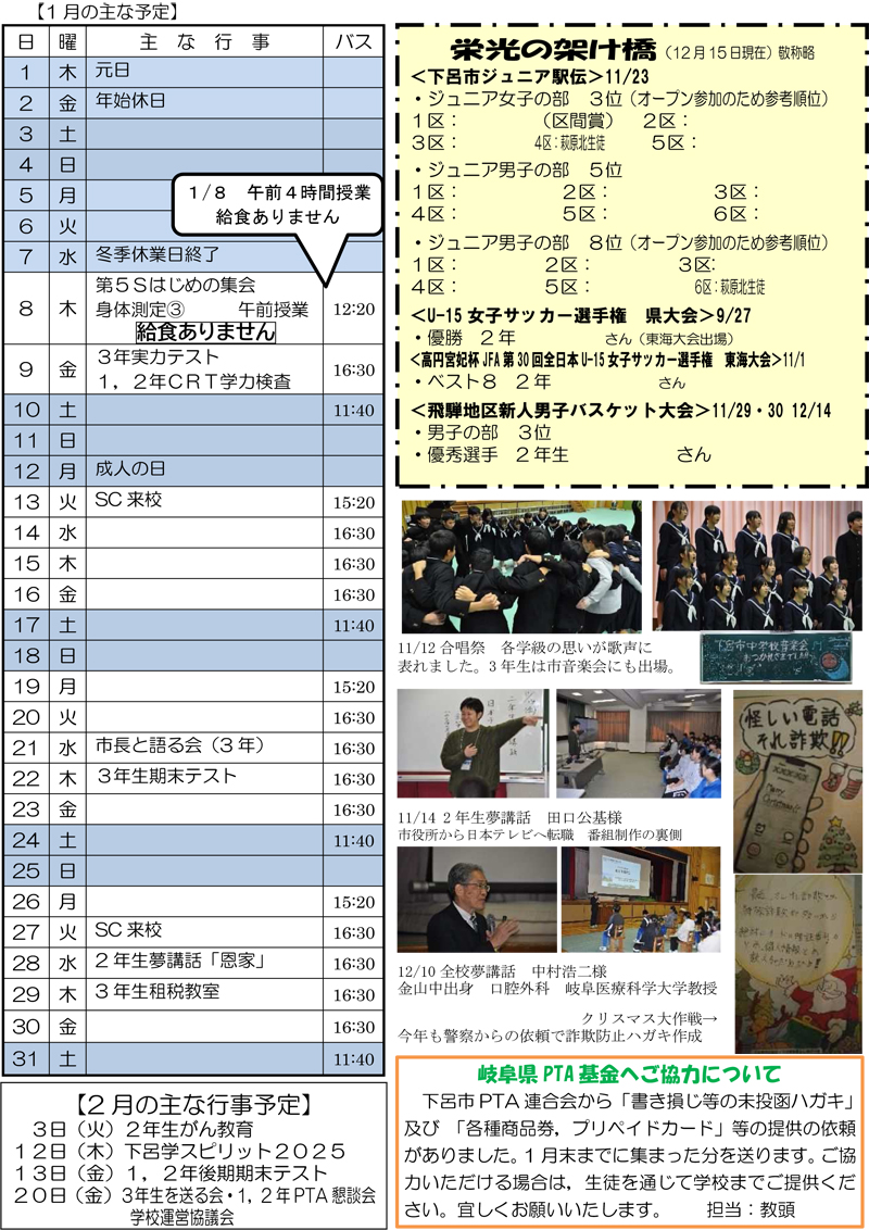 下呂市の小学校9校、中学校6校の情報を中心に、学校教育についての情報をお届けします
