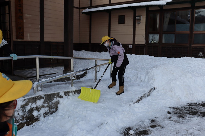 ・いつも高学年の子どもたちが、率先して玄関先に積もった雪よけをしてくれます。