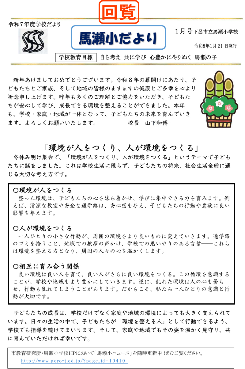 馬瀬小学校だより1月号