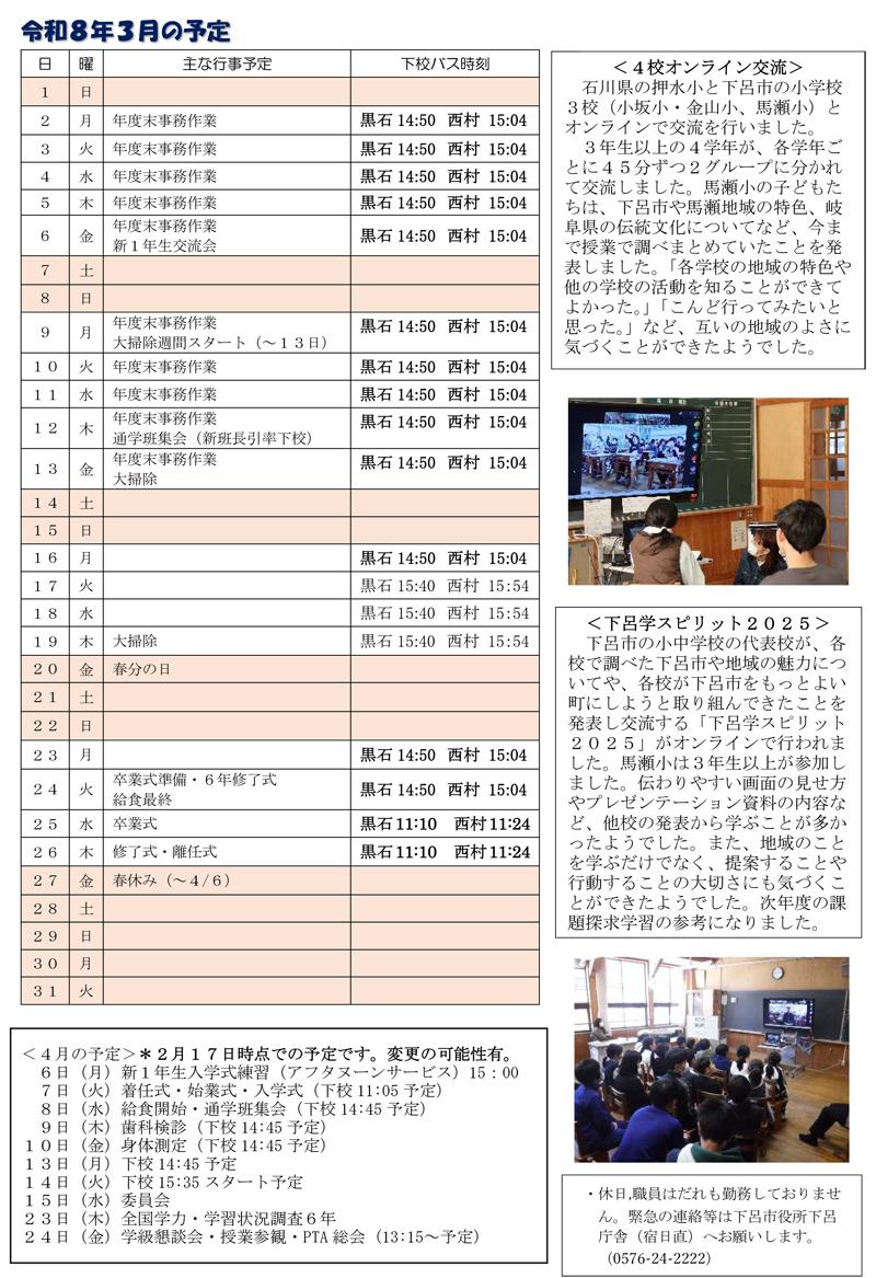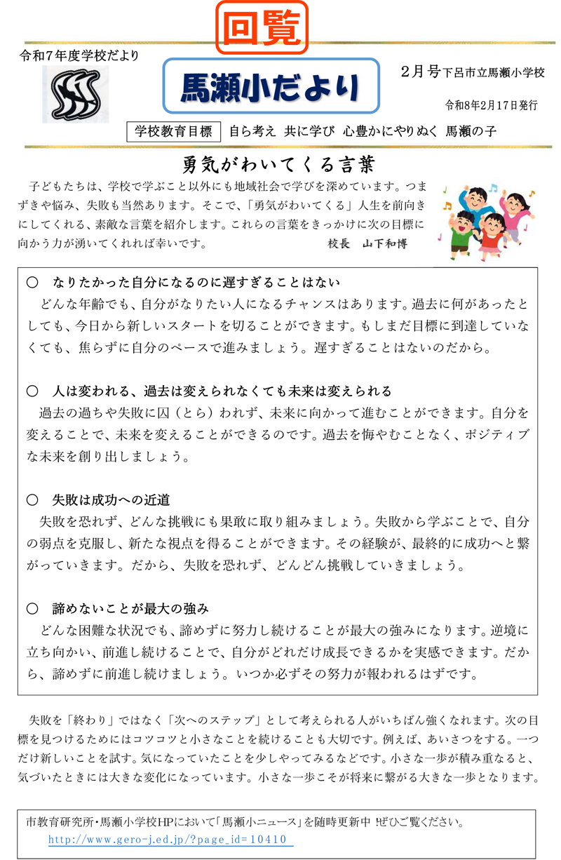 馬瀬小学校だより2月号