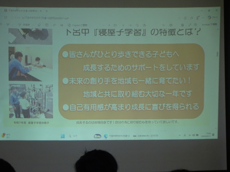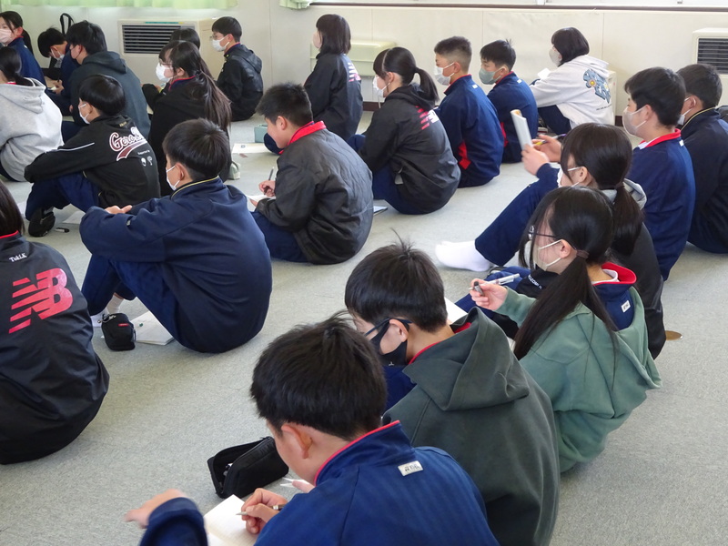 3月11日、1年生の寝屋子学習についての学びが始まりました。実際に働いている方の講話から、どうしてその仕事に就いたのか、働く喜びや大変なこと等を聞きました。コミュニティースクールの裁さんからは、寝屋子学習の概要を教えていただきました。どんな寝屋親さんと出会い、どんな経験し、何を得て生徒達が成長していくのか楽しみです。