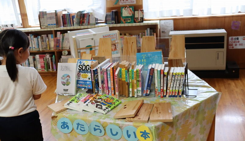 図書館に今年も新しい本が入りました。子どもたちはどんな本が入ったのか確かめ