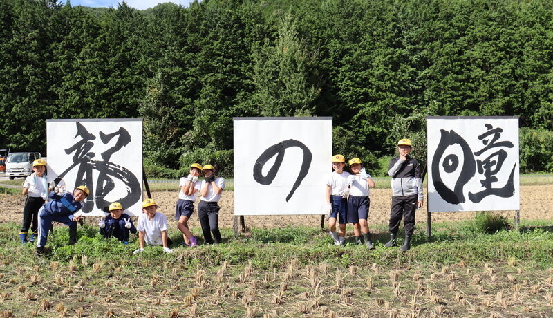 宮田小5年生8名と総合的な学習の時間「ふじがもりタイム」でお米について探究してい