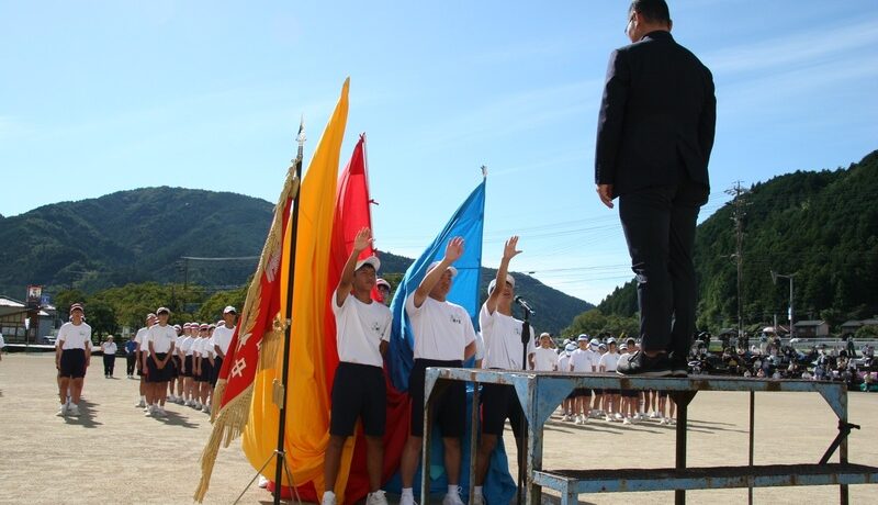 晴天の下、下呂中運動会が行われました。オープニングでは、有志によるダンスが披