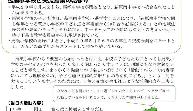 11月11日(火)、1~3年生が萩原小学校まで出かけて交流