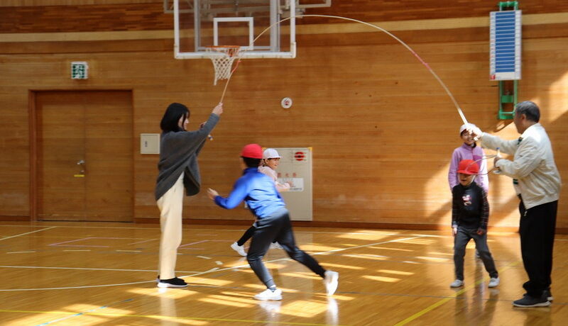 11月4日(火)、体育館の様子を見に行くと、あるスマイル班が8の字飛びの練習をし