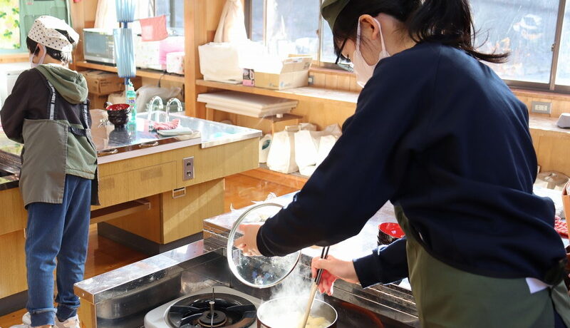 写真は、12月23日(火)に、5年生と6年生が調理実習をしている様子です。ご飯を