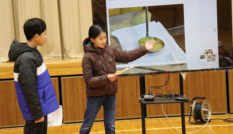 一年間を通して活動をしてきたクラブの成果を、全校の前で発表しました。スライドシ