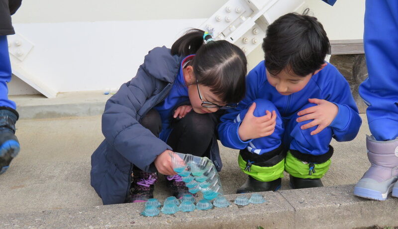 この日の朝の小坂の気温はマイナス6度。前日から準備しておいた色水