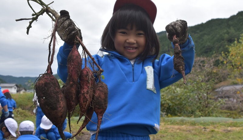 5月に学校裏の畑に植えたサツマイモの収穫をしました。掘りやすいように芋づるを取
