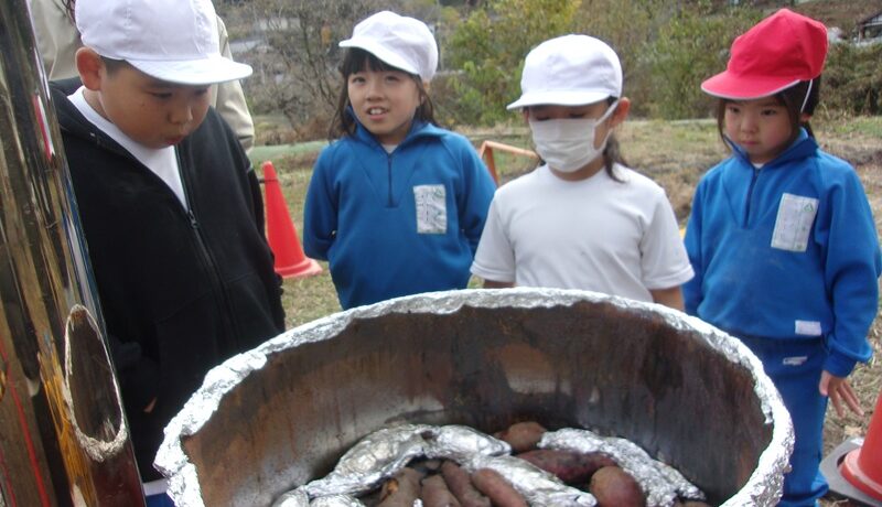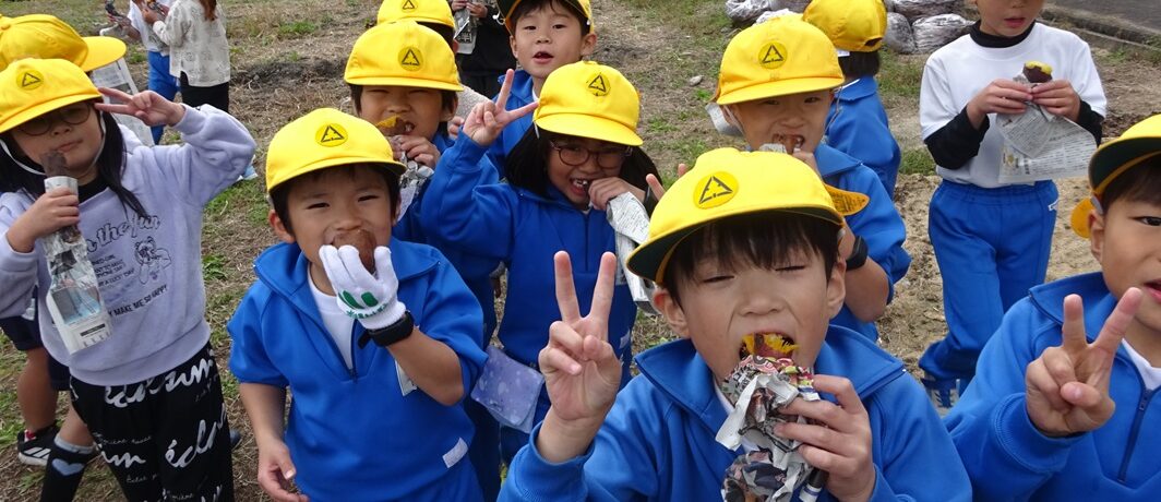 1・2年生で育てて収穫したサツマイモを石焼き芋にして食べました。じっく