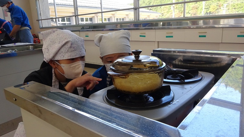 家庭科の学習でお米を炊きました。米がどうやってごはんになるのか。