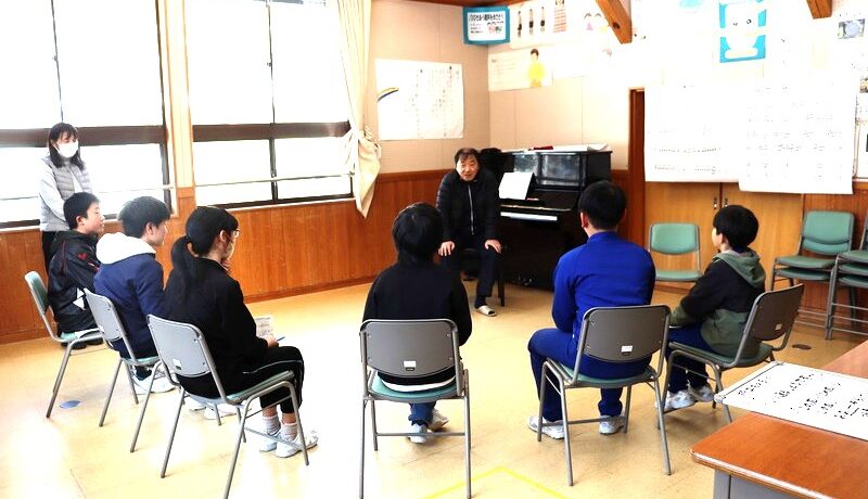 萩原北中学校 校長 中川明博 様を招いて合唱を学びました。