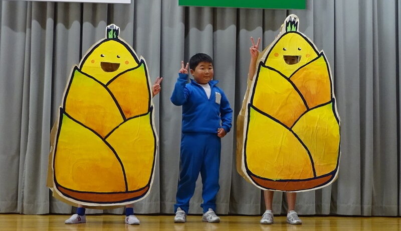 11月のわくわく集会。「みんながスターだ」のコーナーでは、4年生2人がバスケット