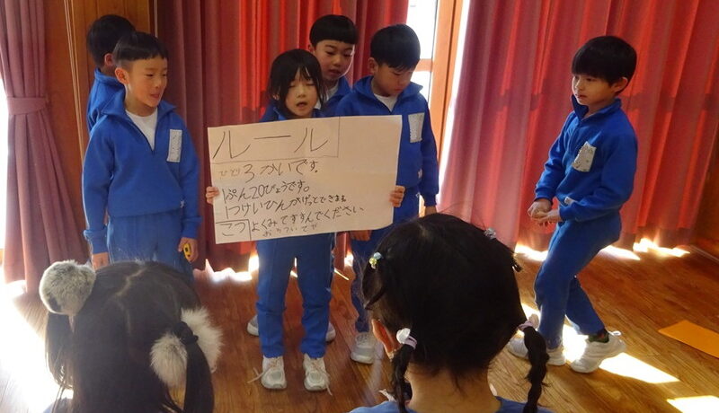 1年生が、たけはらこども園に出かけ、「おもちゃランド」を開き、年