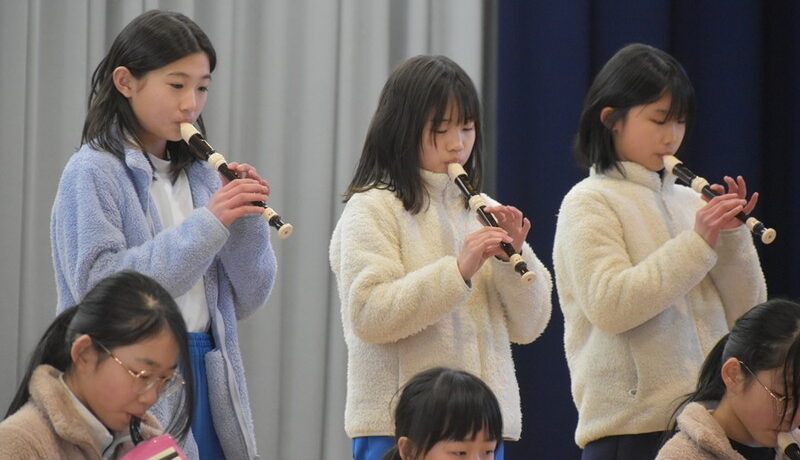 今回のわくわく集会の内容は、全校合唱「ありがとうの花」の練習、下呂市図工美術作品