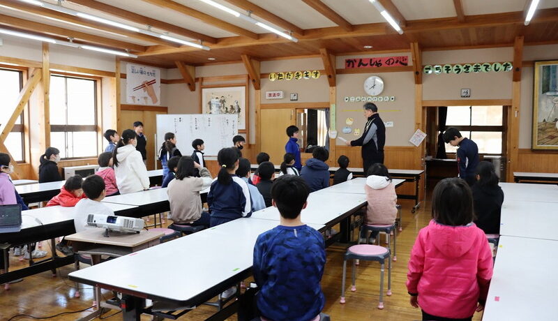 3月5日(木)、全校集会を行い、下呂市図工作品展の表彰をしました。