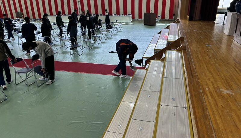 今年も竹原中学校の有志のみなさんが、あいさつ運動に来てくれています。中学生は毎