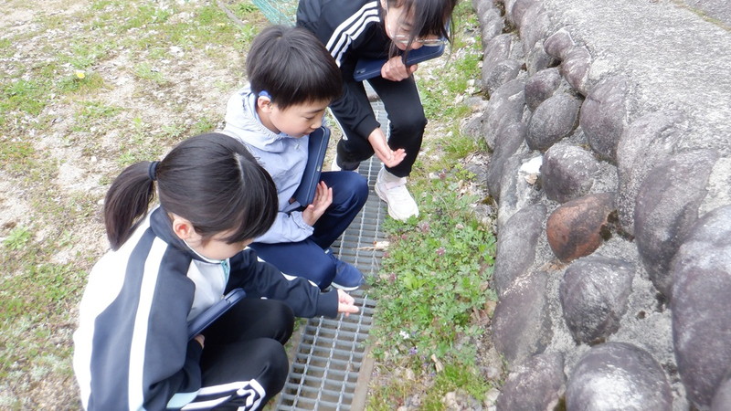 4月13日(月)4年生が理科の授業で桜の枝(花と枝)の様子を観察して