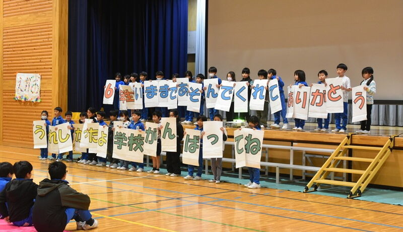 前半は各学年から6年生にお世話になったことに対する感謝のメッセージを伝えました。1年