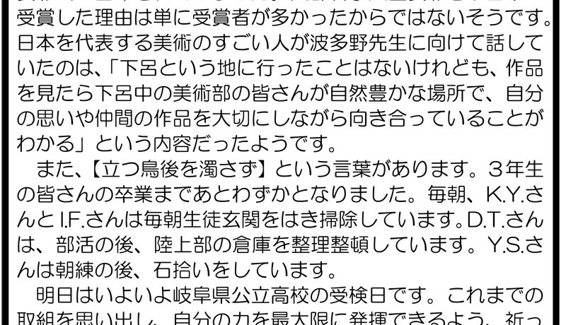 下呂中学校だより2月号