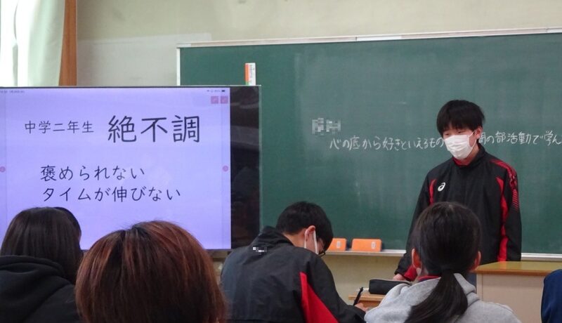 本校のALTエド先生の講話を聞きました。高校時代から社会人、そしてALTになるま